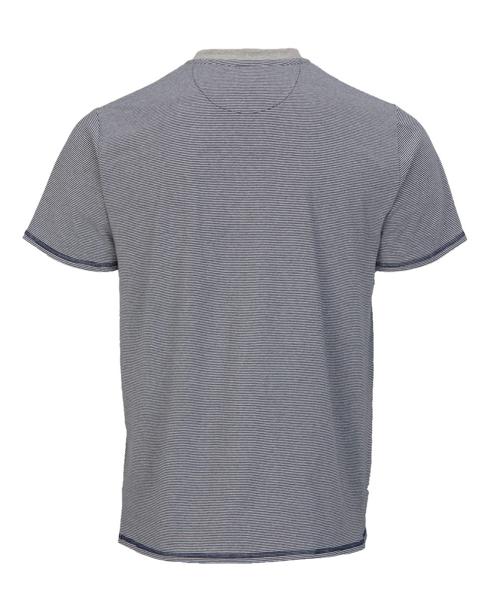 5.31 oz./yd_., 100% cotton 1/8"" stripe repeat Oxford heather self-fabric collar Center front V-notch Contrast stitching along bottom and...