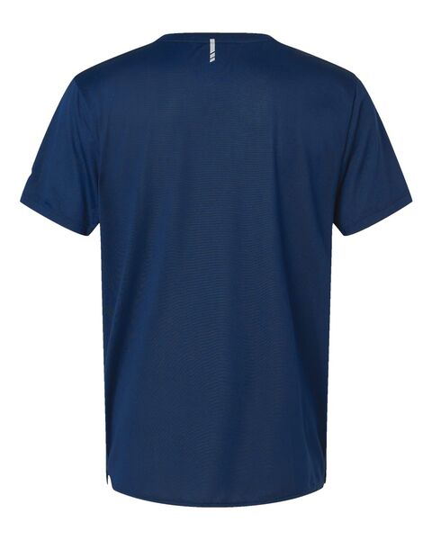 4.7 oz./yd_, 100% polyester Athletic fit Set-in self collar Flat lock seams Left hem woven jock tag and ellipse transfer Back neck yoke reflective...