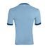 4.8 oz./yd_, 50/50 cotton/polyester jersey knit Double-needle stitched hemmed bottom Contrast color collar and cuffs Set in sleeves Satin label