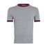 4.8 oz./yd_, 50/50 cotton/polyester jersey knit Double-needle stitched hemmed bottom Contrast color collar and cuffs Set in sleeves Satin label