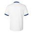 4.8 oz./yd_, 50/50 cotton/polyester jersey knit Double-needle stitched hemmed bottom Contrast color collar and cuffs Set in sleeves Satin label