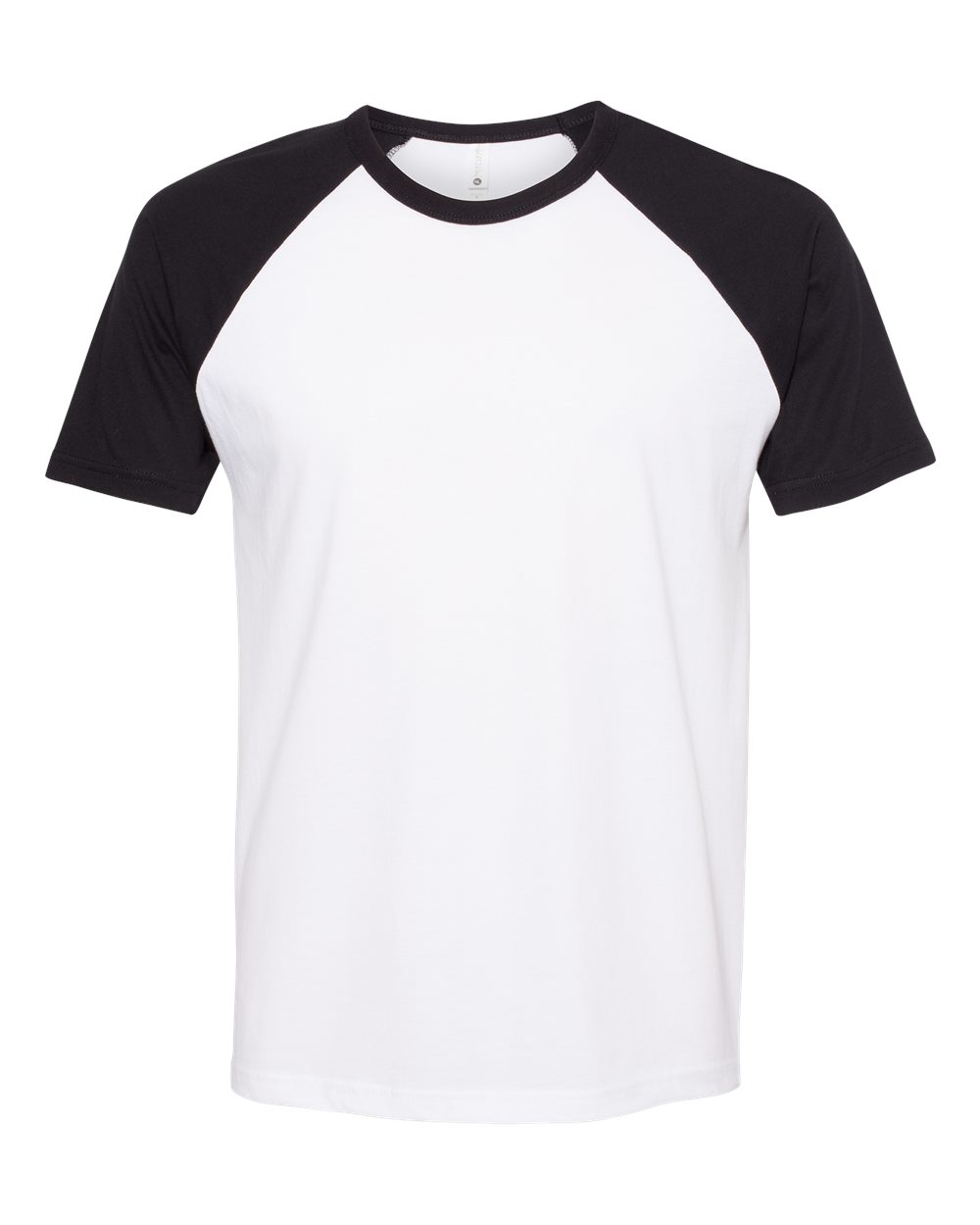 4.3 oz./yd_, 100% combed ringspun cotton, 32 singles Heather Grey is 90/10 cotton/poyester Fabric laundered Contrast raglan sleeves and bound neck...