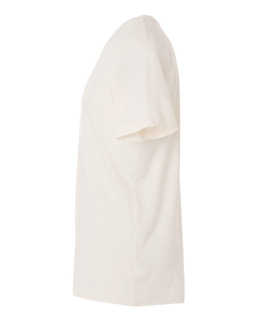 4.5 oz./yd_, 60/40 organic combed ring-spun cotton/post-consumer recycled polyester fine jersey White is sewn with 100% cotton thread Ribbed collar...