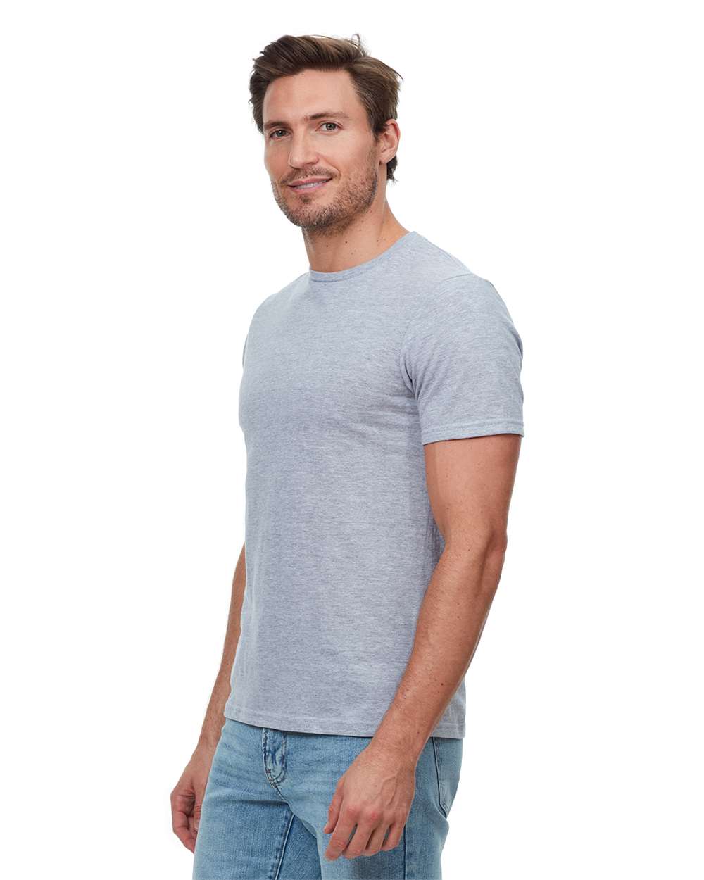 4.5 oz./yd_ (US), 7.5 oz./L yd (CA), 100% preshrunk ring-spun cotton jersey, 30 singles Heather Grey is 90/10 cotton/polyester Modern fit Narrow, set in...