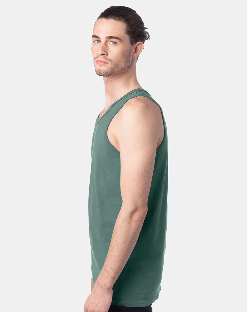 5.5 oz./yd_, US grown, 100% ring-spun cotton Double-needle coverstitched Ribbed neckline and armholes Shoulder-to-shoulder taping Twill label...