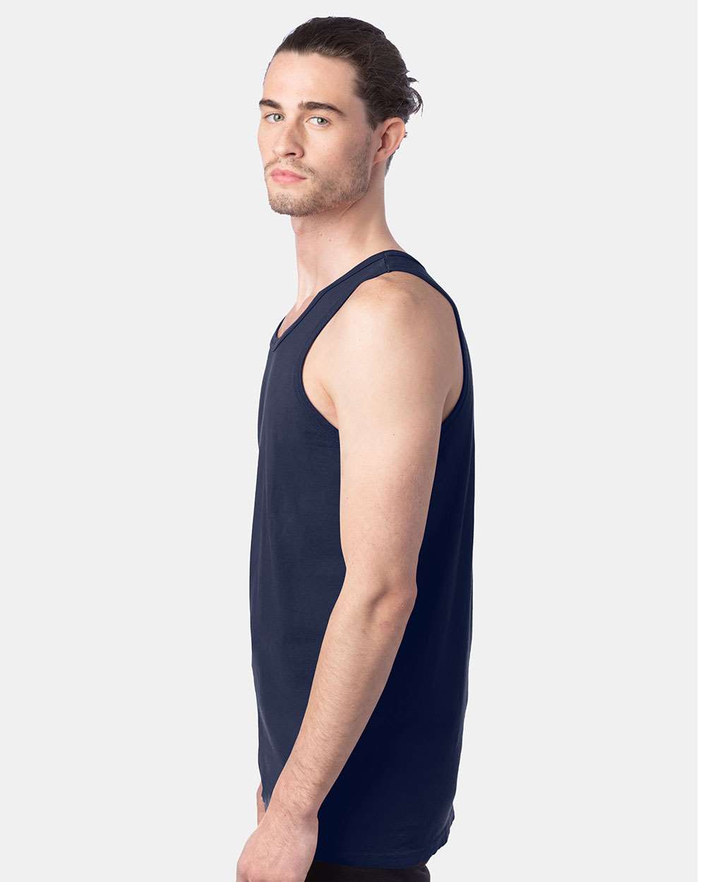 5.5 oz./yd_, US grown, 100% ring-spun cotton Double-needle coverstitched Ribbed neckline and armholes Shoulder-to-shoulder taping Twill label...