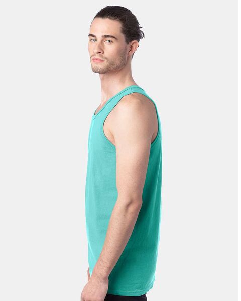5.5 oz./yd_, US grown, 100% ring-spun cotton Double-needle coverstitched Ribbed neckline and armholes Shoulder-to-shoulder taping Twill label...