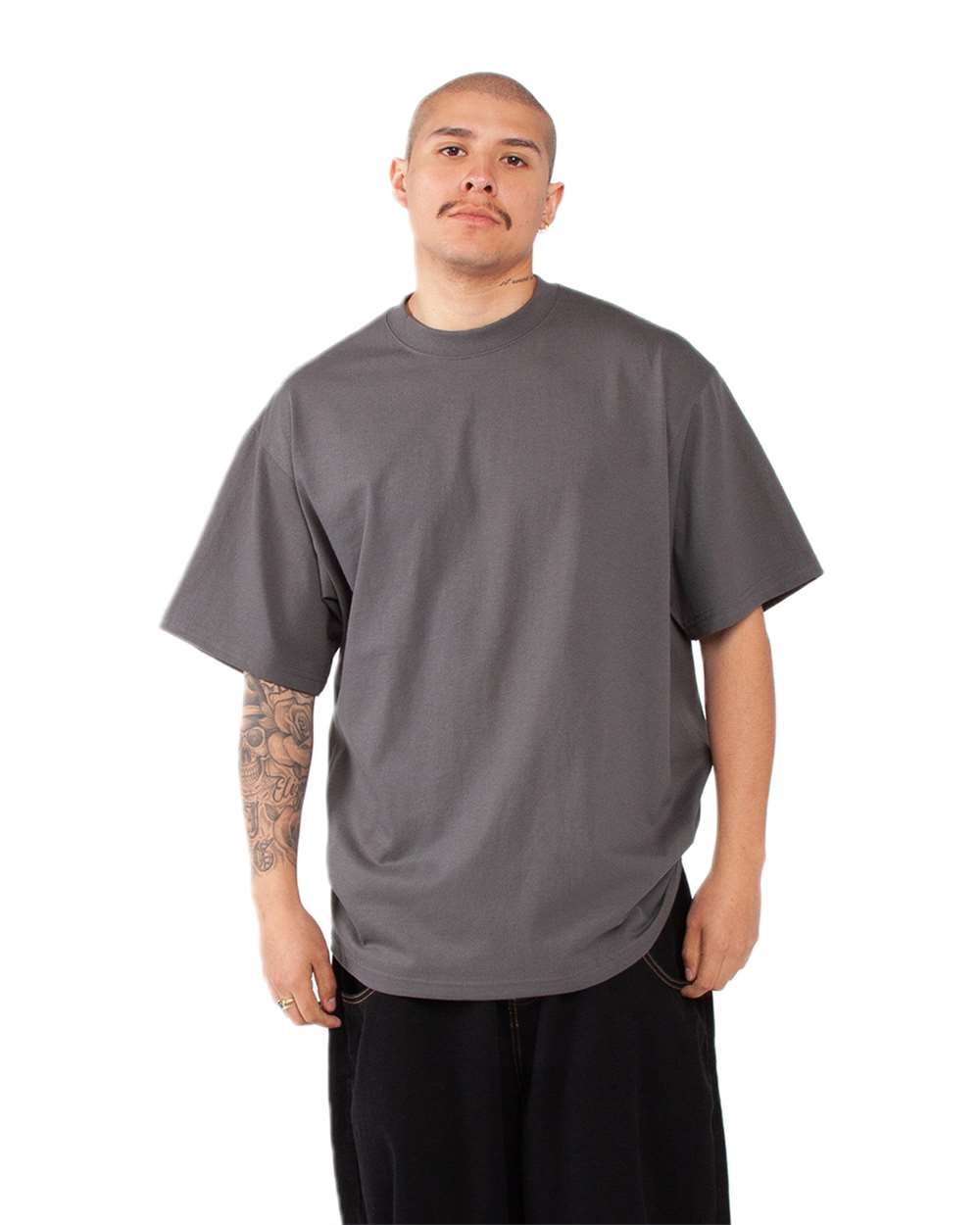 7.5 oz./yd_, 100% USA cotton, 16 singles Heather Grey is 90/10 USA cotton/polyester Charcoal Grey is 50/50 USA cotton/polyester Oversized/Relaxed with...