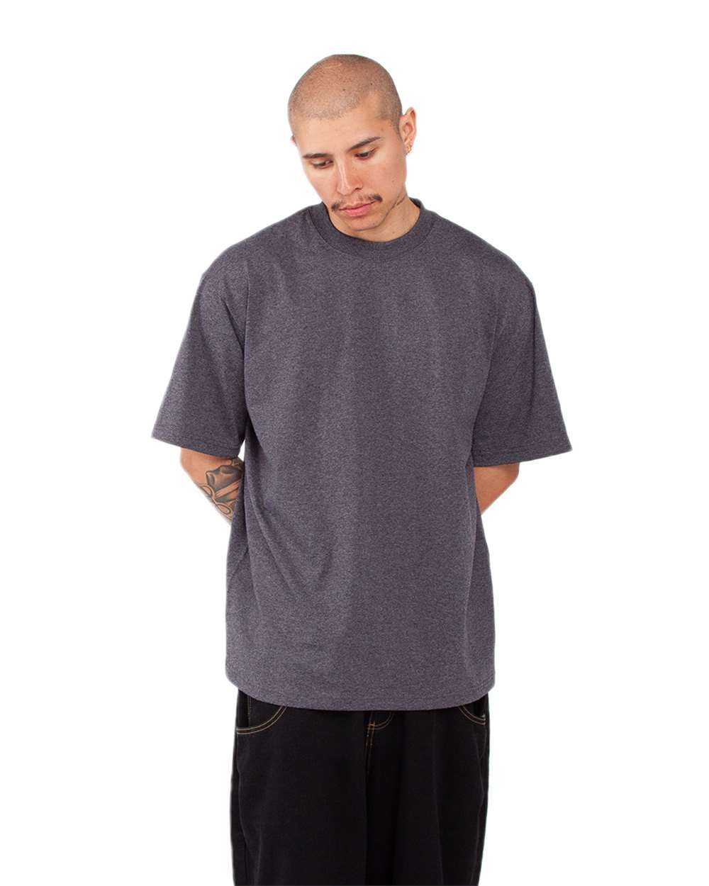 7.5 oz./yd_, 100% USA cotton, 16 singles Heather Grey is 90/10 USA cotton/polyester Charcoal Grey is 50/50 USA cotton/polyester Oversized/Relaxed with...