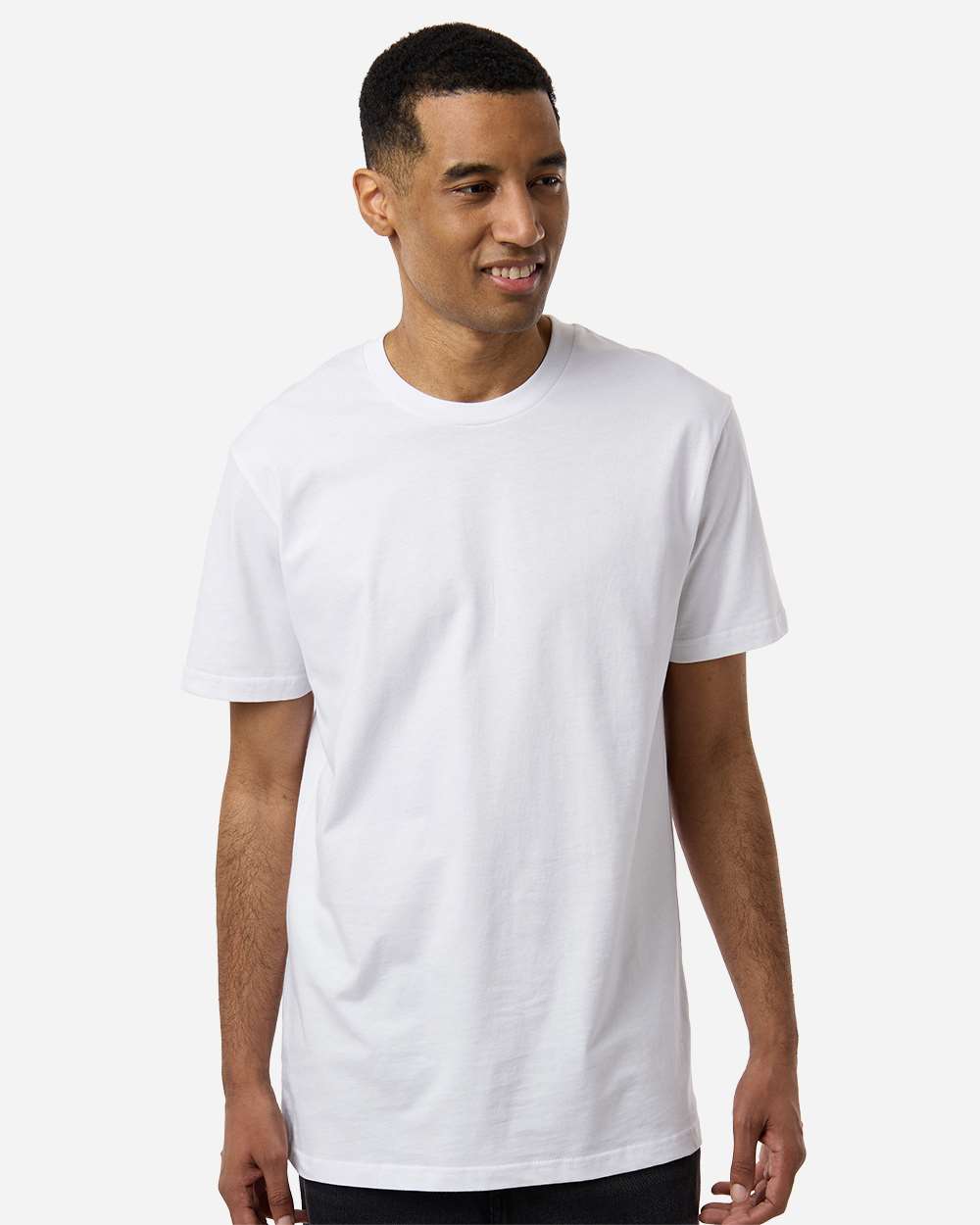 5.3 oz./yd_, (180 gm) 100% ring-spun cotton, 26 singles Grey Heather is 60/40 cotton/polyester 1x1 ribbing Jersey neck taping Tear away label