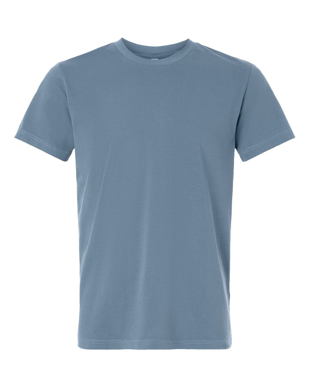 5.3 oz./yd_, (180 gm) 100% ring-spun cotton, 26 singles Grey Heather is 60/40 cotton/polyester 1x1 ribbing Jersey neck taping Tear away label
