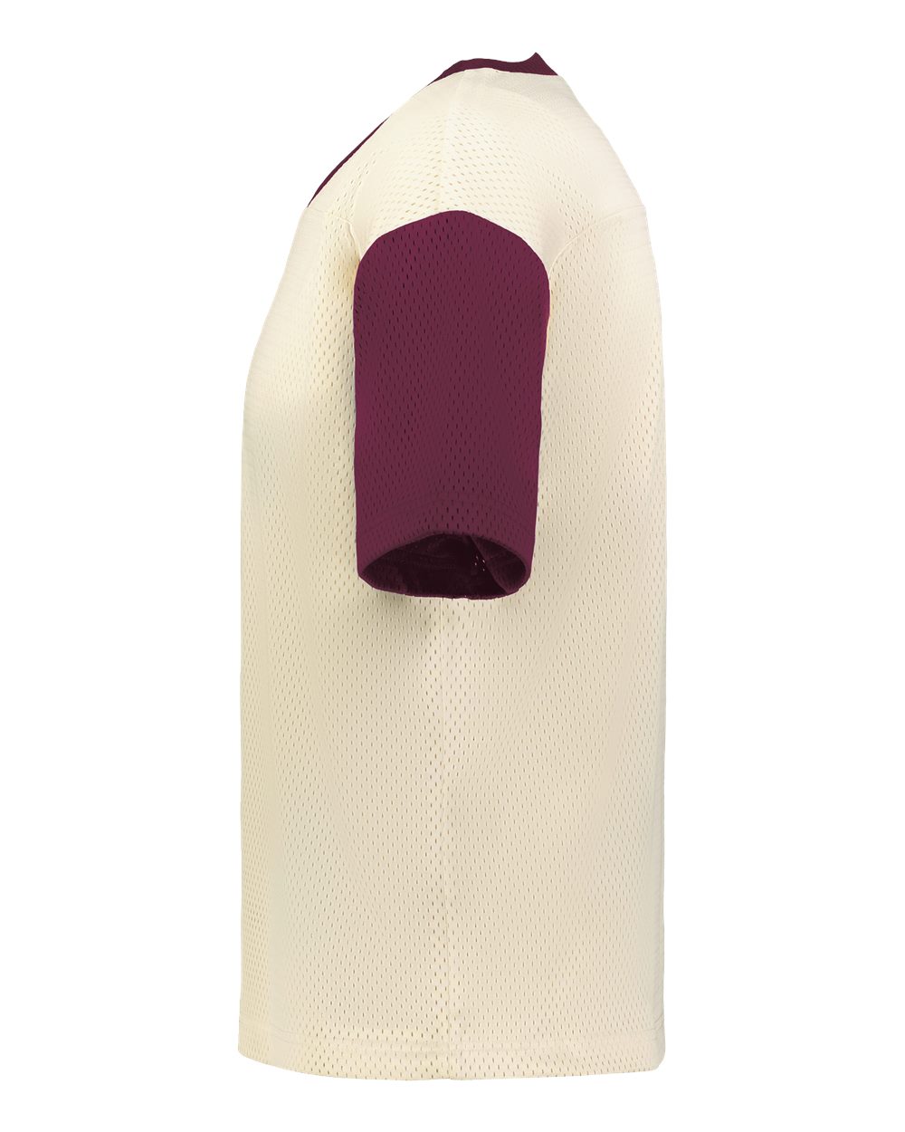 6 oz./yd_, two layers of 100% polyester sport mesh Oversized, boxy fit Self-collar Set-in sleeves Hanger loop label