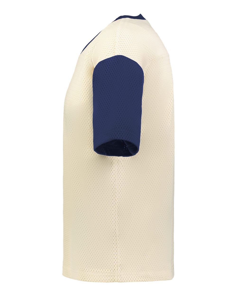 6 oz./yd_, two layers of 100% polyester sport mesh Oversized, boxy fit Self-collar Set-in sleeves Hanger loop label
