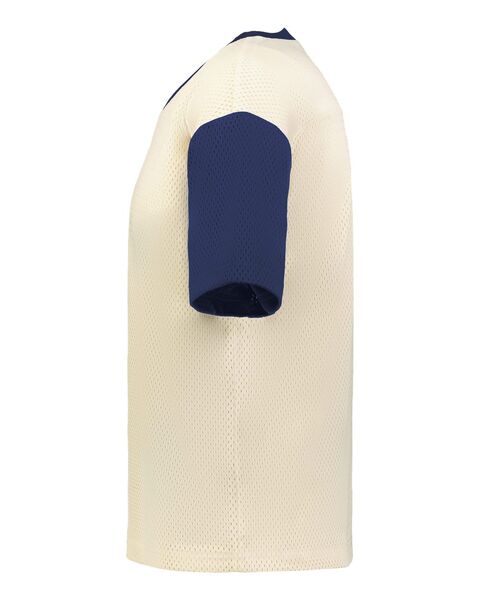 6 oz./yd_, two layers of 100% polyester sport mesh Oversized, boxy fit Self-collar Set-in sleeves Hanger loop label