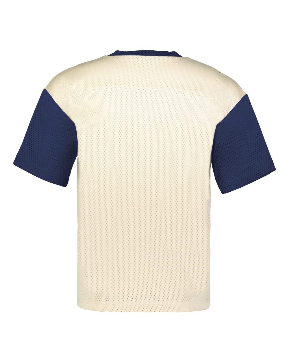 6 oz./yd_, two layers of 100% polyester sport mesh Oversized, boxy fit Self-collar Set-in sleeves Hanger loop label