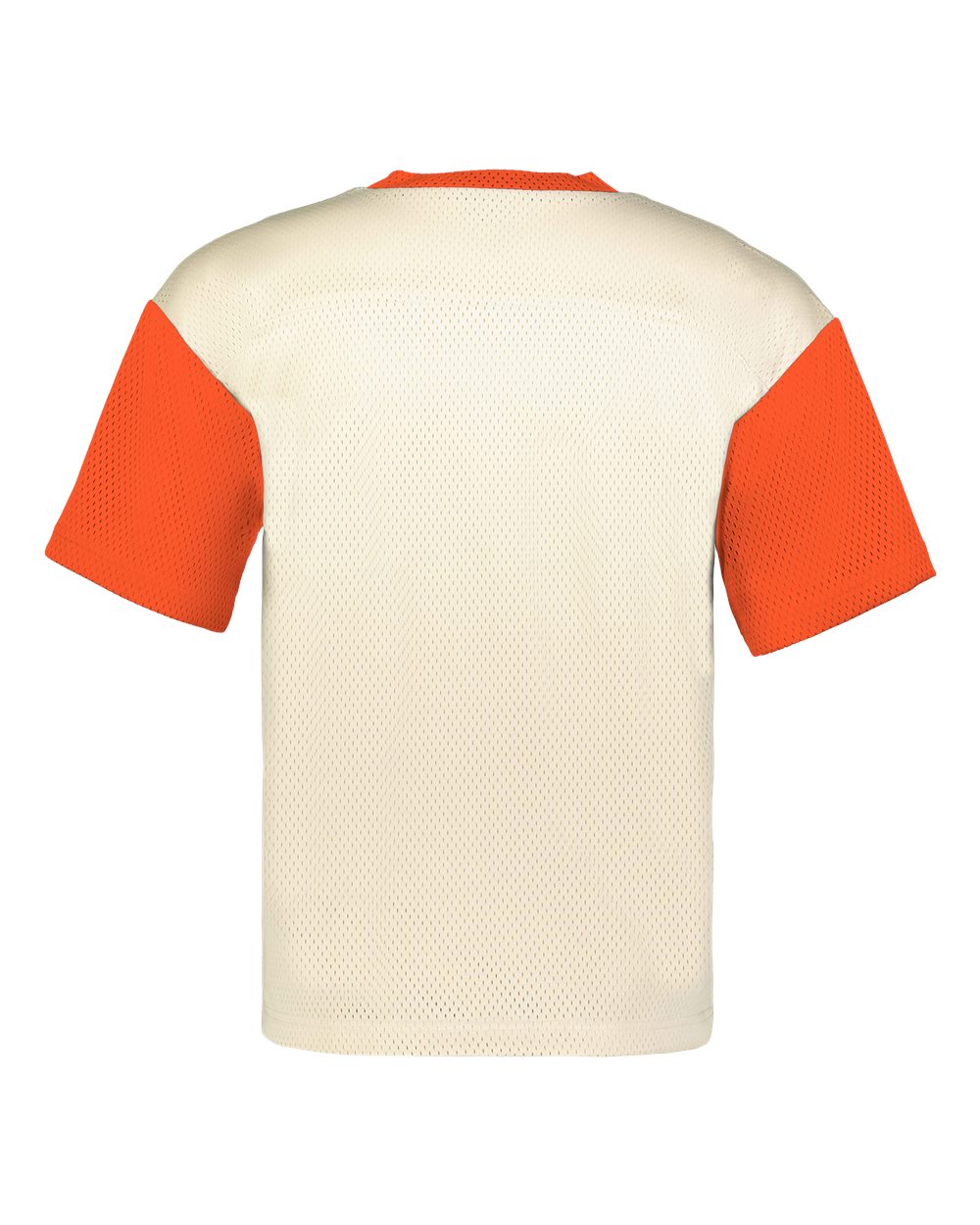 6 oz./yd_, two layers of 100% polyester sport mesh Oversized, boxy fit Self-collar Set-in sleeves Hanger loop label