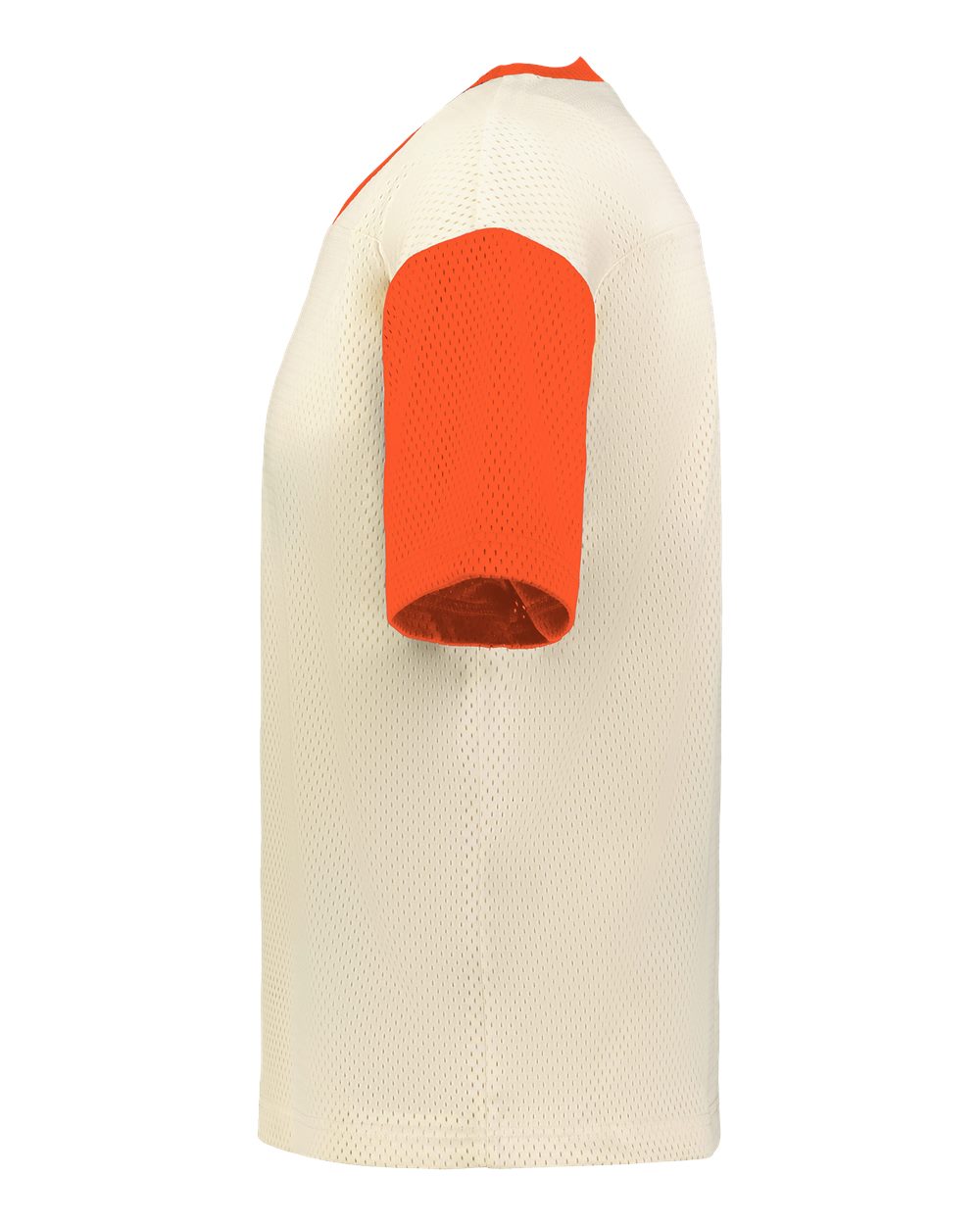 6 oz./yd_, two layers of 100% polyester sport mesh Oversized, boxy fit Self-collar Set-in sleeves Hanger loop label