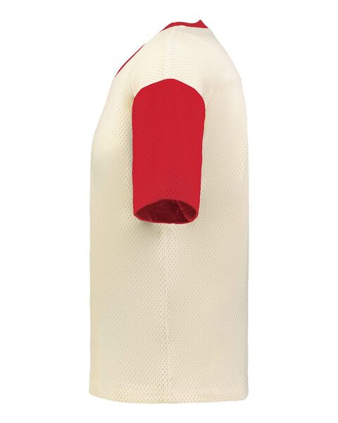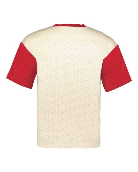 6 oz./yd_, two layers of 100% polyester sport mesh Oversized, boxy fit Self-collar Set-in sleeves Hanger loop label