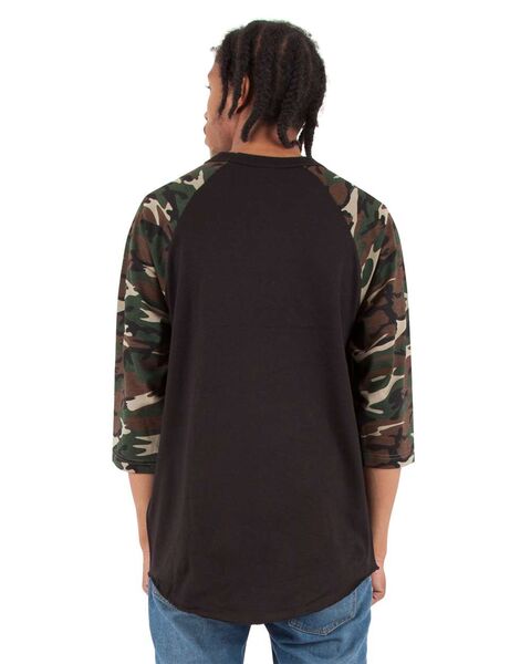 Unisex Three-Quarter Sleeve Camo Raglan T-Shirt