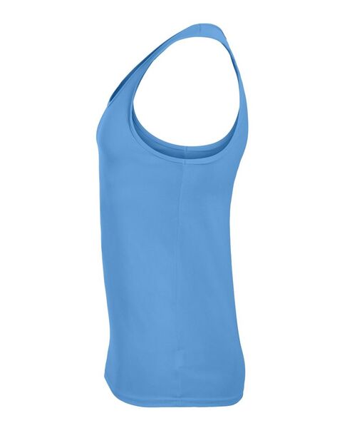 3.4 oz./yd_, 100% polyester wicking knit Wicks moisture away from the body Self fabric binding at neck and armholes Double-needle hemmed bottom Tear...