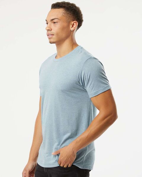 4.2 oz./yd_ (US), 7.2 oz./L yd (CA), 50/25/25 polyester/combed ring-spun cotton/rayon, 32 singles Fabric laundered Set-in 1x1 triblend baby rib collar...