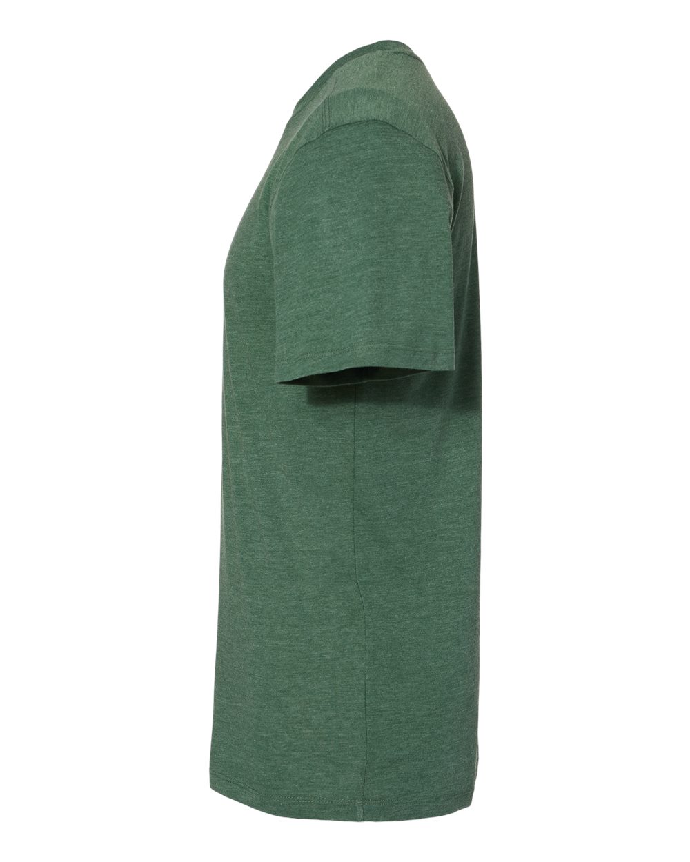 3.8 oz./yd_, 50/38/12 polyester/cotton/rayon triblend knit Crewneck collar Set-in sleeves with rolled forward shoulder seam Tear away label