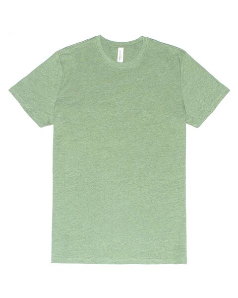 4.8 oz./yd_., (US), 8 oz./L yd (CA), 60/40 ring-spun cotton/recycled polyester, 26 singles Retail fit Side seams Tear away label Recycled poly helps...
