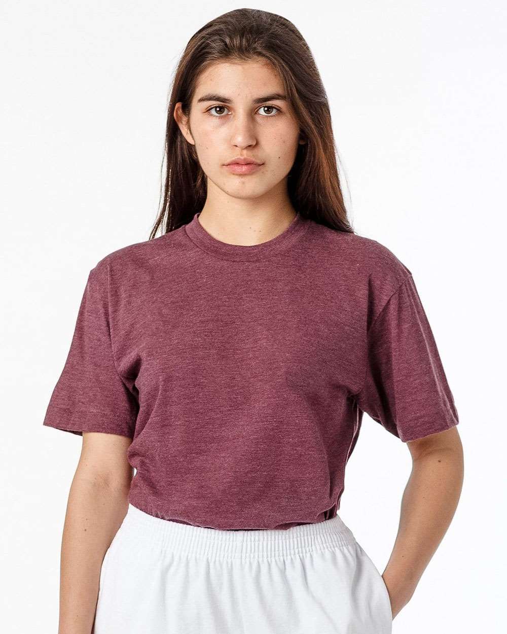 3.7 oz./yd_, 50/50 polyester/combed ring-spun cotton Ribbed neckband Made in USA