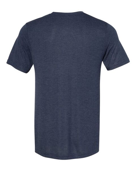 3.8 oz./yd_, 65/35 polyester/viscose, 32 singles Heather Navy is 3.7 oz./yd_, 70/30 rayon/polyester Pre-shrunk Retail fit Unisex sizing Hemmed sleeve...