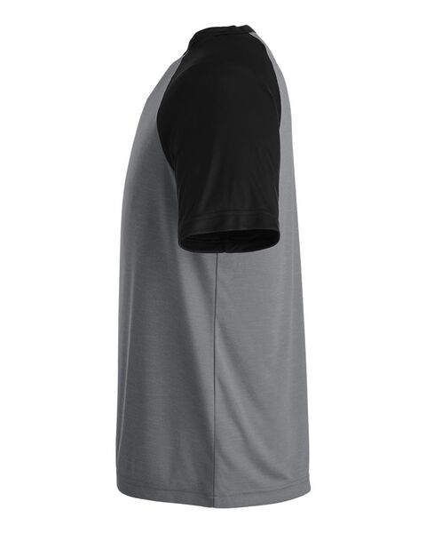 3.5 oz./yd_ (US), 5.8 oz./L yd (CA), 100% polyester solid and sonic heather interlock Moisture-wicking properties UPF 15-39 protection Cationic dyes...