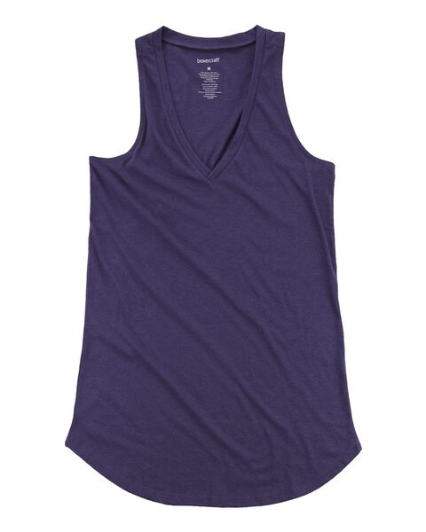 4.3 oz./yd_, 80/20 polyester/cotton sueded jersey Loose fit Lapped V-Neck Slight racerback Heat transfer label