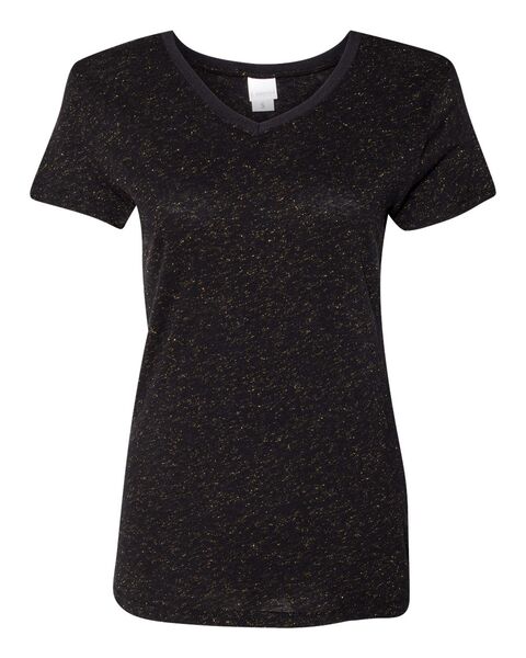 3.2 oz./yd_, 95/5 cotton/Lurex¨ Glitter knit throughout fabric 1x1 rib-knit mitered v-neck collar