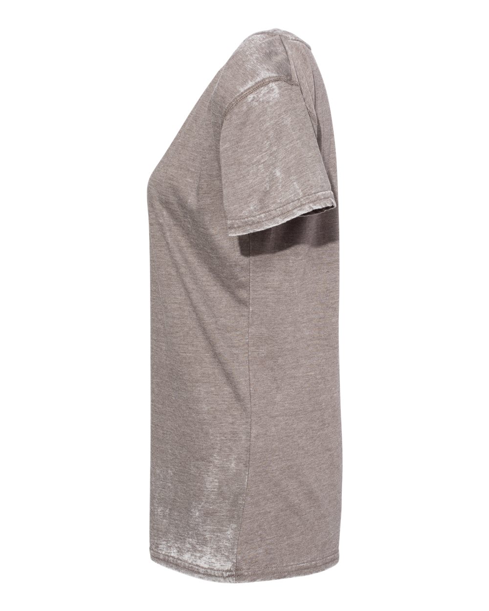 4 oz./yd_, 50/50 cotton/polyester burnout jersey Acid-washed with silicone finish Self-fabric collar Flatlock-stitched throughout Tear away label
