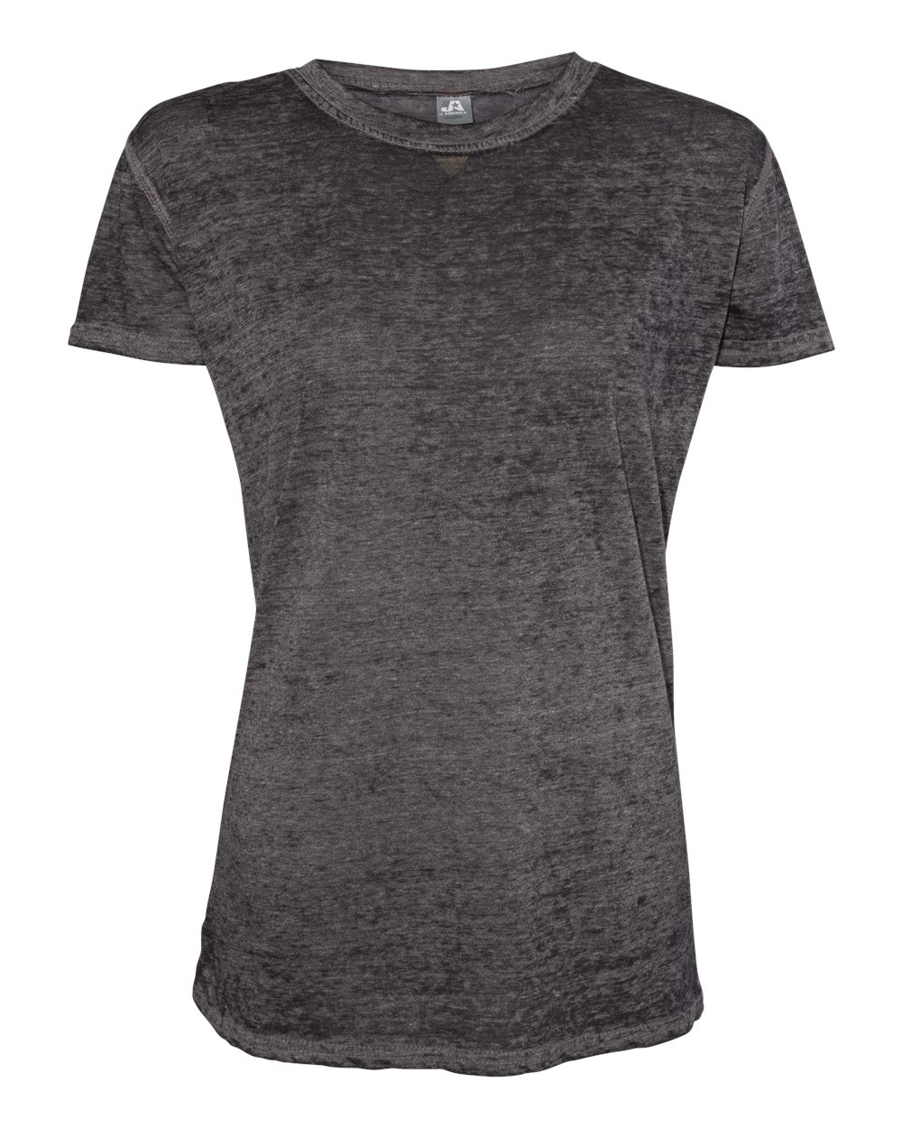 4 oz./yd_, 50/50 cotton/polyester burnout jersey Acid-washed with silicone finish Self-fabric collar Flatlock-stitched throughout Tear away label