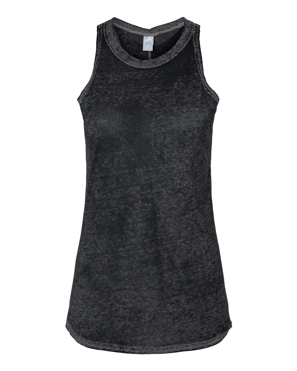4 oz./yd_, 50/50 cotton/polyester burnout jersey Acid-washed with silicone finish Seam down center back Flatlock-stitched throughout Tear away label