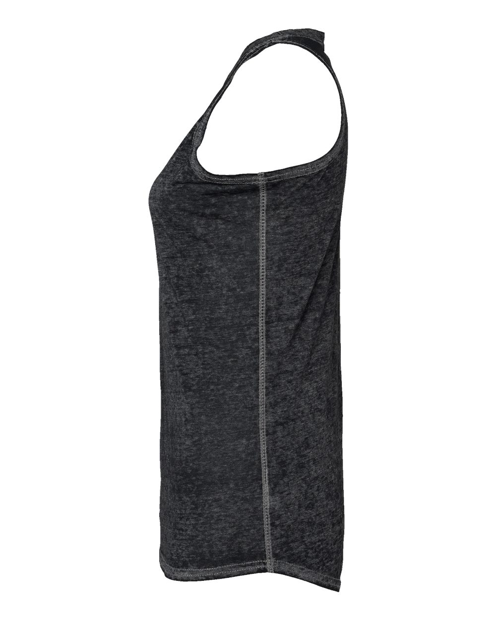 4 oz./yd_, 50/50 cotton/polyester burnout jersey Acid-washed with silicone finish Seam down center back Flatlock-stitched throughout Tear away label
