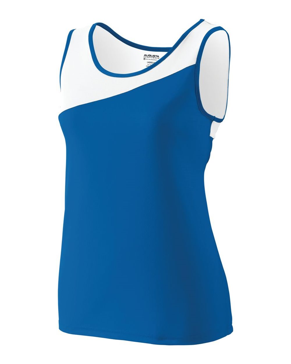 100% polyester wicking knit Wicks moisture away from the body Self-fabric binding at neck and armholes Asymmetrical contrast-color yoke Double-needle...