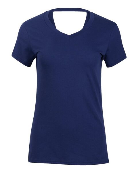 4.28 oz./yd_, 50/50 polyester/cotton, double brushed jersey Regular fit Crossover back detailing Ribbed neckline Turn back at bottom and sleeve...
