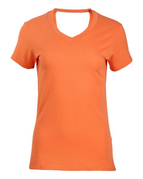 4.28 oz./yd_, 50/50 polyester/cotton, double brushed jersey Regular fit Crossover back detailing Ribbed neckline Turn back at bottom and sleeve...
