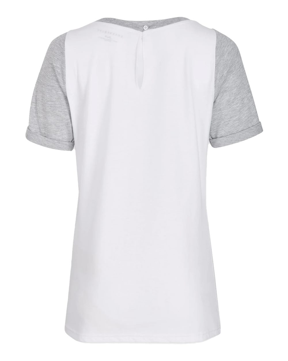 4.28 oz./yd_, 50/50 polyester/cotton, double brushed jersey Regular fit Lapped shoulder seam Keyhole back opening Turn back at bottom and sleeve...