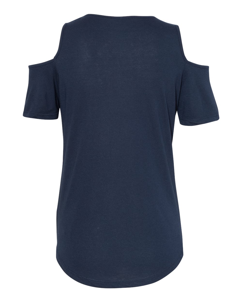4.3 oz./yd_, 80/20 polyester/cotton sueded jersey Cold shoulder detailing Contoured waistline Double-needle sleeve hem Shirttail with double-needle hem...