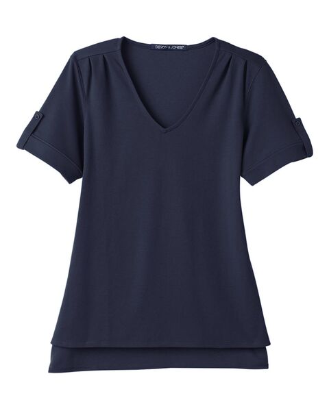 • Flattering V-neck with shoulder pleat details