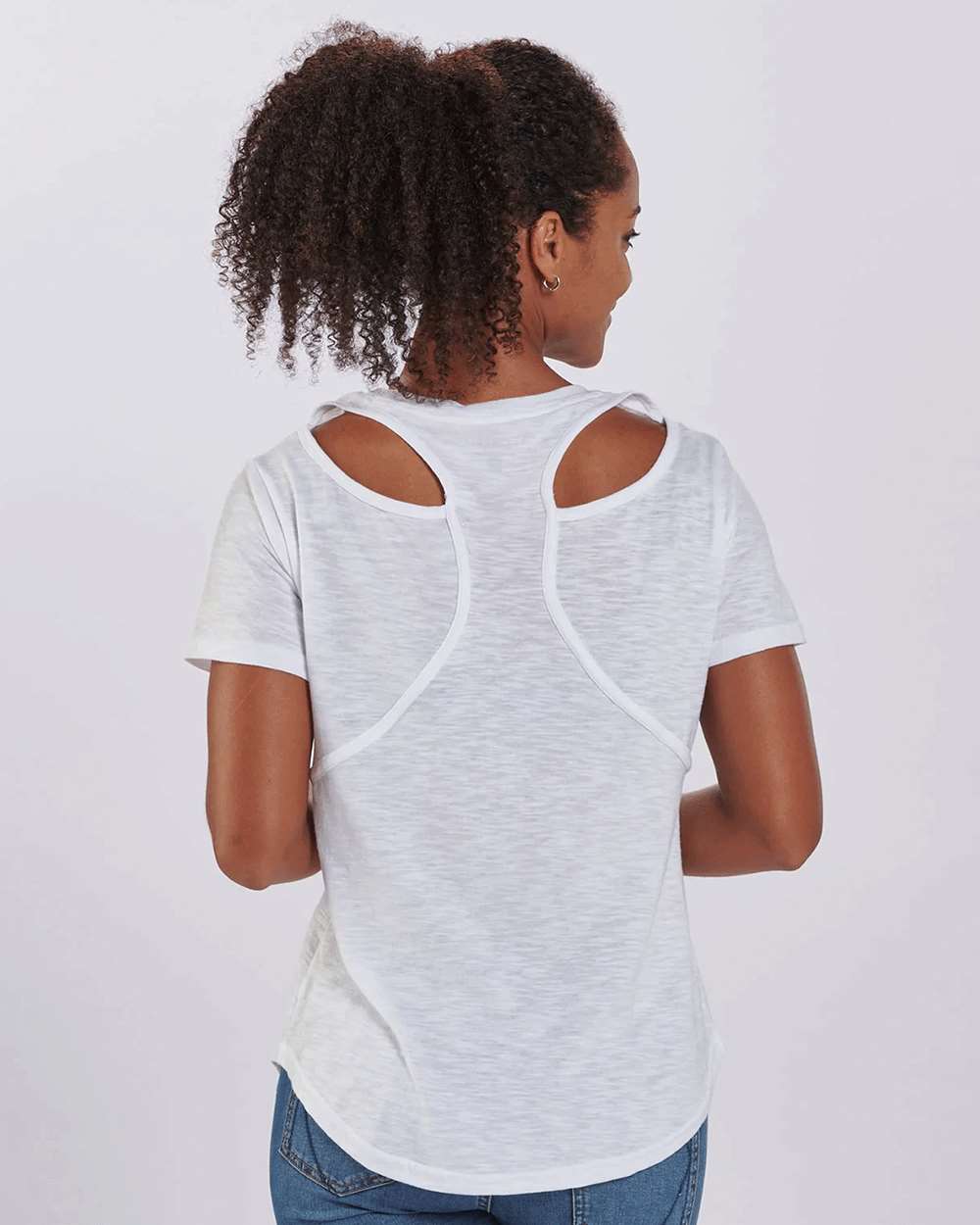 4.1 oz./yd_, 60/40 cotton/polyester, slub jersey Racerback with cutaway detail