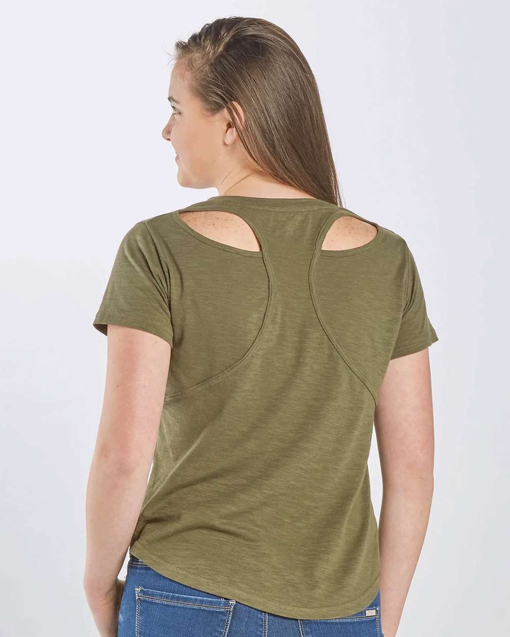 4.1 oz./yd_, 60/40 cotton/polyester, slub jersey Racerback with cutaway detail