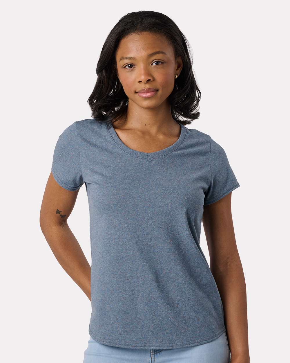 4.4 oz./yd_, 50/50 recycled cotton/recycled polyester, 26 singles Retail fit Double-needle stitching Back neck tape Shoulder-to-shoulder taping Locker...