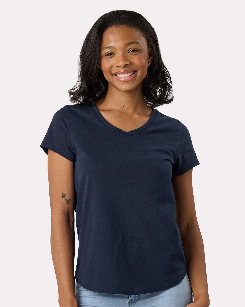 4.4 oz./yd_, 50/50 recycled cotton/recycled polyester, 26 singles Retail fit Double-needle stitching Back neck tape Shoulder-to-shoulder taping Locker...