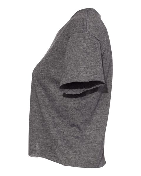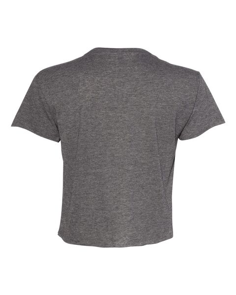 3.5 oz./yd_, 65/35 polyester/combed ring-spun cotton, 40 singles Relaxed, modest fit 1x1 baby rib, relaxed crew neckline Raw edge sleeves and hem...