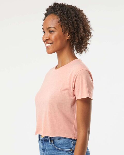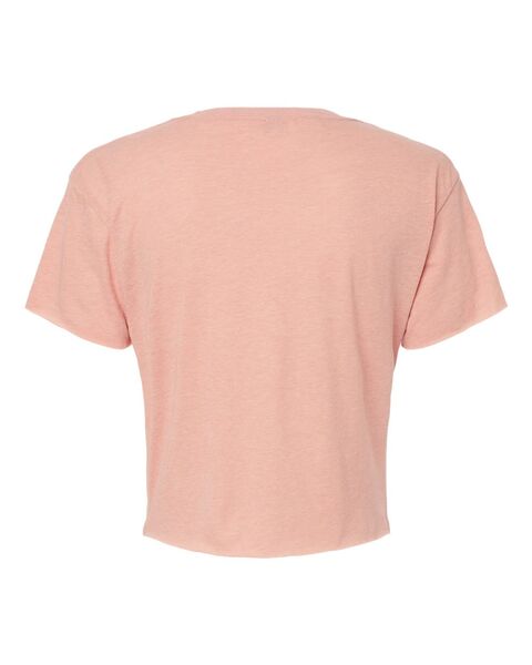 3.5 oz./yd_, 65/35 polyester/combed ring-spun cotton, 40 singles Relaxed, modest fit 1x1 baby rib, relaxed crew neckline Raw edge sleeves and hem...