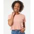 3.5 oz./yd_, 65/35 polyester/combed ring-spun cotton, 40 singles Relaxed, modest fit 1x1 baby rib, relaxed crew neckline Raw edge sleeves and hem...