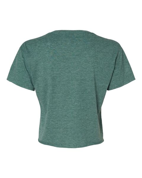 3.5 oz./yd_, 65/35 polyester/combed ring-spun cotton, 40 singles Relaxed, modest fit 1x1 baby rib, relaxed crew neckline Raw edge sleeves and hem...